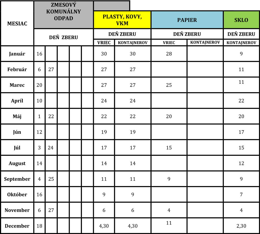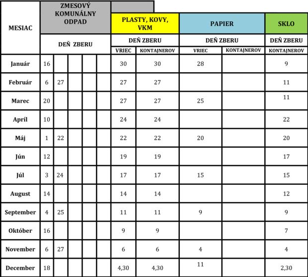 Termíny zberu odpadu 2026